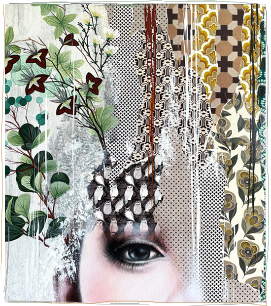 - Created with mixed media, including acrylic paint, hand-torn paper, and rich textures.