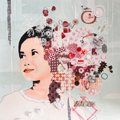 Irene joined the initiative, creating a mixed-media portrait of an 10-year-old girl named Vita, integrating plastic trash collected from a Bali beach into the canvas. During an art show at Alila Hotel Seminyak, the piece was successfully sold, with the proceeds donated to support the cause.